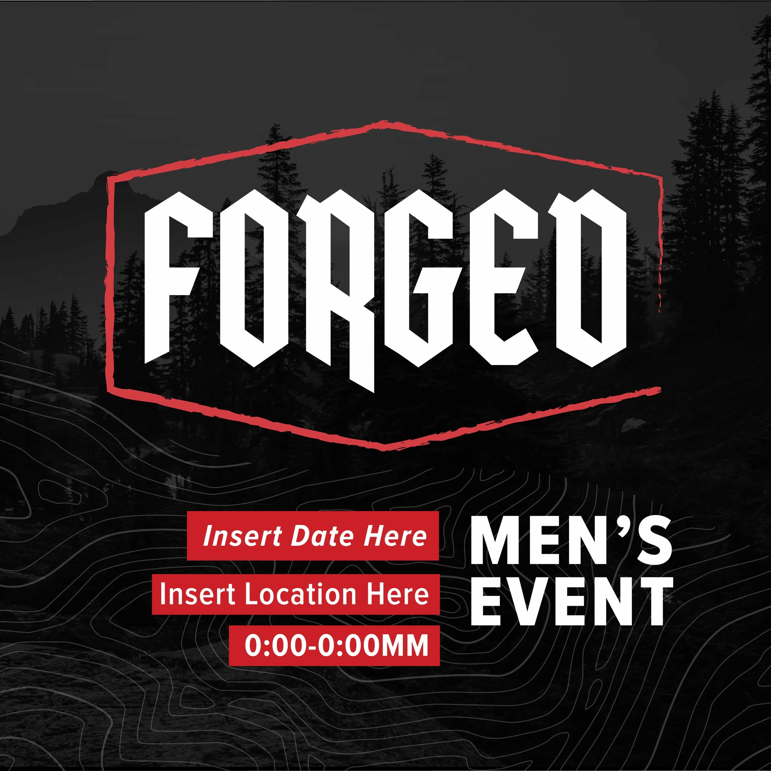 To amplify this mission, we introduce FORGED, a graphics pack designed exclusively for men's ministry events. Included in this Graphics Pack are fully editable Adobe Illustrator files that you can use as a template to promote your next men’s ministry event, including an invite card print template.